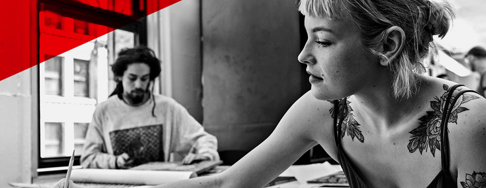働きながら、大学に通いながら受講できる 週1日からの受講が可能。平日は学校や会社、週末はバンタンでデザインを学ぶフレックスコース。ご自身の生活スタイルを変えずにデザイン留学に備えることが可能。